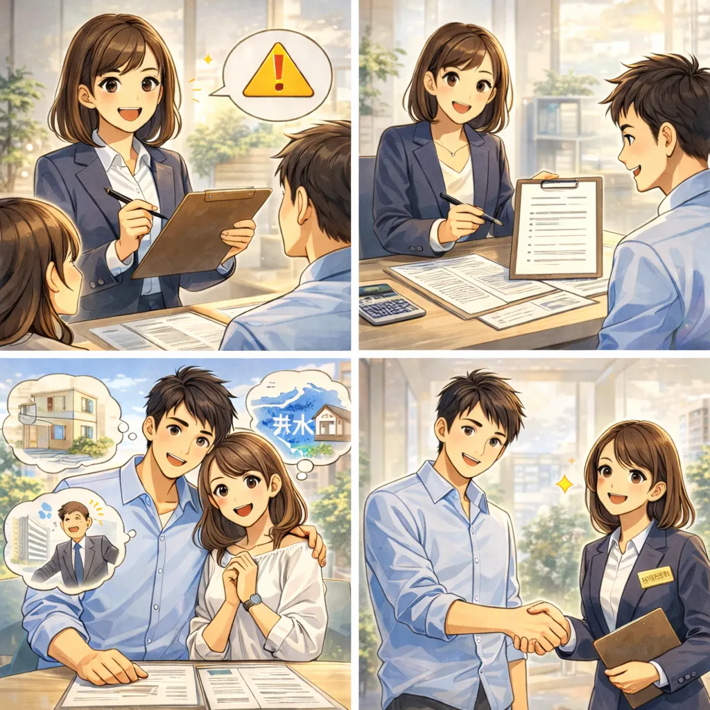 重要事項説明書は、不動産取引における最も重要なステップの一つです。買う側、売る側、貸す側、借りる側のいずれの立場であっても、重要事項説明書の読み合わせは、リスクを最小限に抑えるために欠かせません。私たちの不動産仲介サービスでは、各取引が円滑に進むよう、専門知識を活かしたサポートを行っています。法律や契約に関する豊富な経験を持つスタッフが、あなたの疑問や不安に丁寧にお答えします。売買契約や賃貸契約のどちらにおいても、安心して取引を進めていただけるよう全力でサポートします。大切な人生の一大決断をサポートさせていただくために、信頼と安心のサービスをぜひご利用ください!